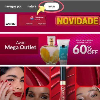 AVON junto com a Natura IR À LOJA Use o Cupom: CLIENTE 25/09/2025 25 Views NOVIDADE IMPERDÍVEL 🩷 Agora você encontra produtos AVON junto com a Natura em minha loja! Basta mudar para AVON na barra superior (como na foto). Aproveite já promoções incríveis com até 60% OFF no Avon Mega Outlet! Use o Cupom: CLIENTE AVON junto com a Natura IR À LOJA
